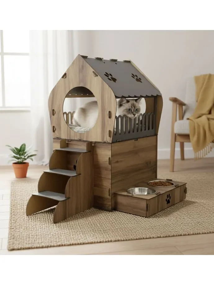– integrierte Futternäpfe in einer ausziehbaren Schublade unten