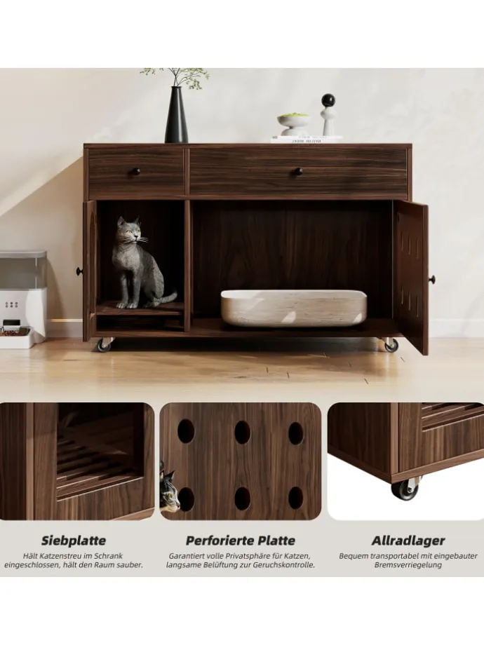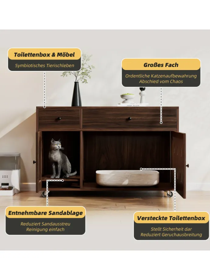 Katzentoilette nicht im Lieferumfang enthalten. Ideal für Katzenhalter, die Wert auf Ästhetik und Ordnung legen.