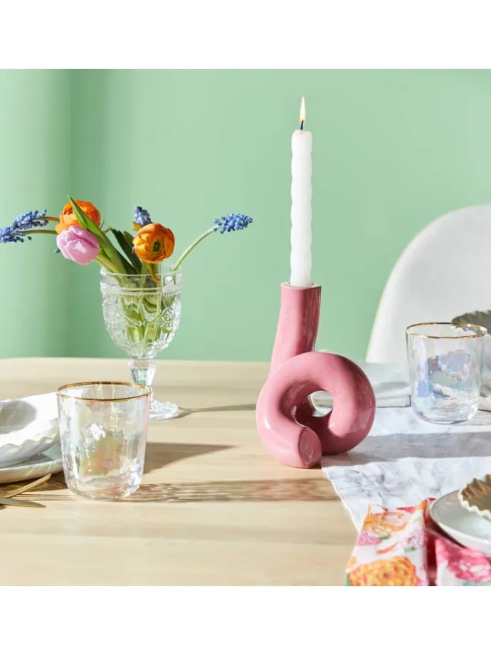 Der Rotate Kerzenhalter aus Steingut hat den Dreh raus: Seine geschlungene Form ist ganz auf einer Linie mit der modernen Formensprache von Vasen und anderen Wohnaccessoires.