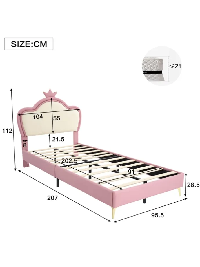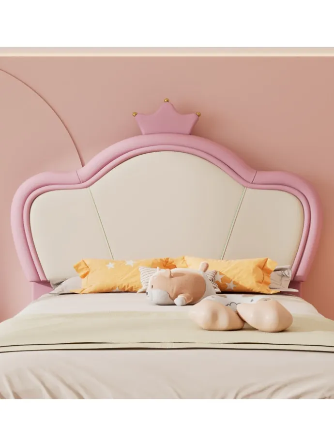 Verspieltes Design: Kopfteil mit dekorativer Krone und wellenförmiger Polsterung für märchenhafte Optik