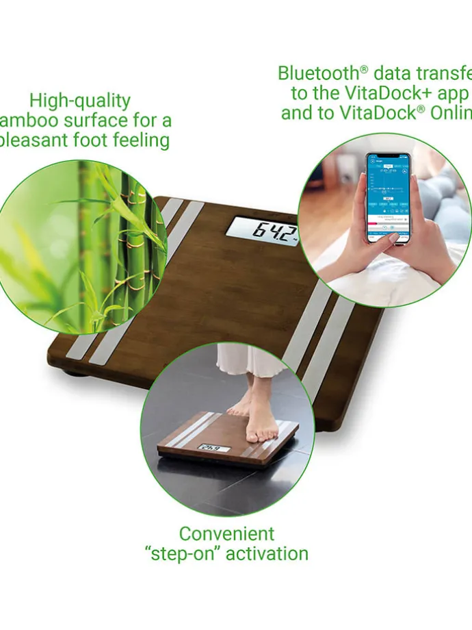 – Messung von Gewicht, Körperfett, Körperwasser, Muskelmasse und Knochengewicht