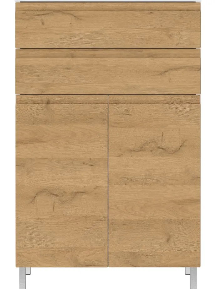 Schneller Aufbau, sofortiger Nutzen: Dank der detaillierten Anleitung ist die Montage der Kommode VEER schnell und unkompliziert. Einmal aufgebaut, bietet sie mit zwei Schubladen und zwei Türen, hinter denen sich verstellbare Einlegeböden befinden, ausreichend Stauraum für Ihre Bedürfnisse. Die Türdämpfung und der Selbsteinzug der Schubladen ermöglichen ein leises und sanftes Schließen.