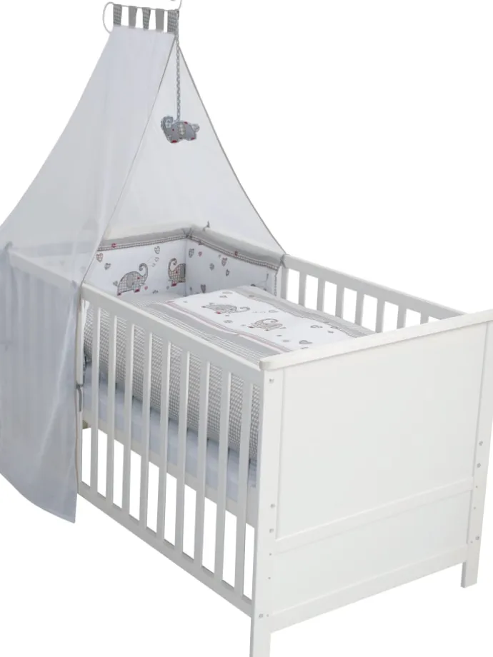 Das roba Kombi-Kinderbett Jumbotwins 70×140 cm ist ideal geeignet für Baby´s Erstausstattung. Bettwäsche in liebevoll gestaltetem Design, ein weich gepolstertes Nestchen, eine antiallergische Matratze, ein Himmel sowie eine Himmelstange sind natürlich im Lieferumfang enthalen. Mit enthaltenen Umbauecken kann das Kinderbett zu einem Juniorbett verwandelt werden und garantiert dadurch lange Verwendung.
