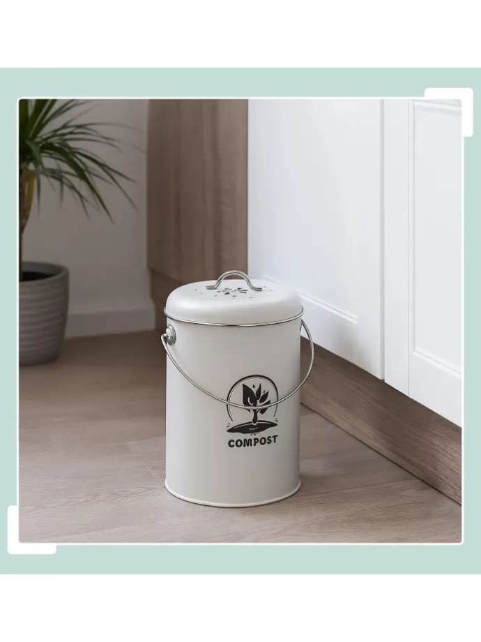 Der kleine Mülleimer eignet sich wunderbar zum Sammeln der anfallenden Bioabfälle in der Küche. Er lässt sich am Henkel leicht transportieren und besteht aus robustem Eisen, das mühelos zu reinigen ist. Dank seinem schicken Vintage-Design erfüllt der Abfalleimer nicht nur seinen Zweck, sondern ist ebenso ein dekorativer Blickfang. Der abnehmbare Deckel mit Aktivkohlefilter schützt vor unangenehmen Gerüchen.