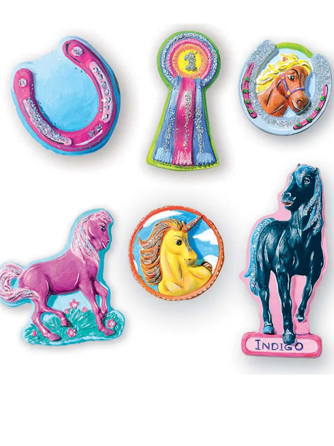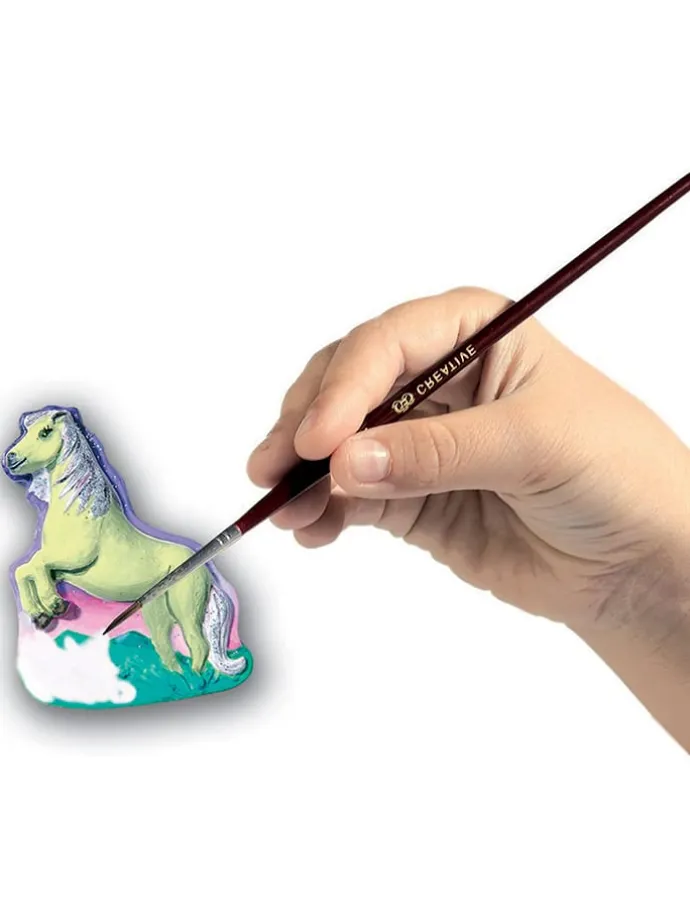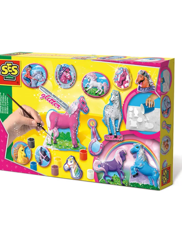 – Inhalt: Gipsmasse, Vorlage aus Kunststoff, 6 Farben, Pinsel, Röhrchen mit Glitzer, Anleitung