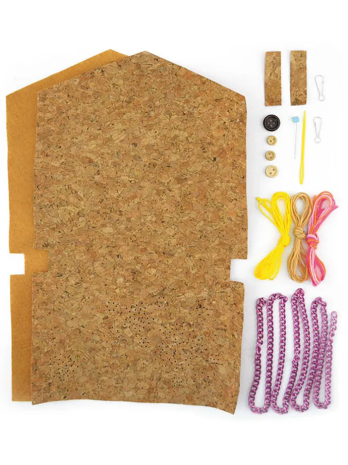 – Inhalt: 2 Korkbögen, Knöpfe, Schnüre, 1 Band zum Umhängen, Zubehör