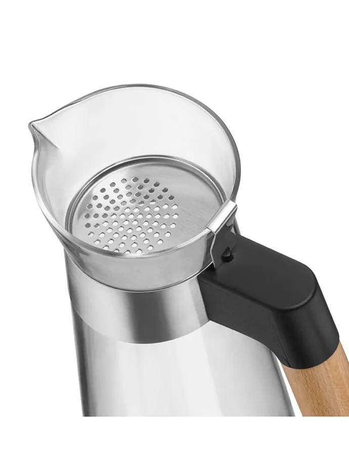 – integriertes, herausnehmbares Sieb aus Edelstahl