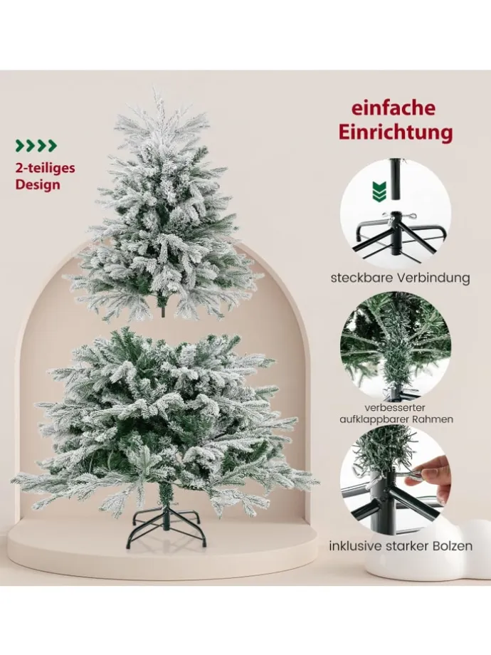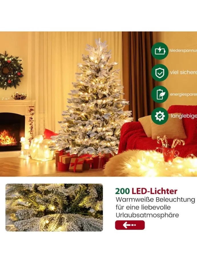 Feiern Sie die Wintersaison mit diesem atemberaubenden 146 cm Weihnachtsbaum! Geschmückt mit 688 gesprenkelten Zweigen strahlt er einen üppigen und lebendigen Charme aus, der Ihre Gäste begeistern und Sie an einen blühenden Frühling erinnern wird. Der Weihnachtsbaum erwacht nachts mit 200 LED-Lichtern zum Leben, die ein warmweißes Licht ausstrahlen und eine romantische Atmosphäre schaffen. Hergestellt aus langlebigem PVC und hochwertigem PE, ist dieses Meisterwerk nicht nur feuerbeständig, sondern auch völlig sicher für Ihre Familie. Der Aufbau ist dank seiner Gelenkverbindungen ein Kinderspiel und minimiert Ihren Aufwand und maximiert Ihre Freude. Außerdem bieten wir ein Paar Handschuhe für besseren Schutz an. Lassen Sie die Verzauberung dieses Baumes Ihre Feiertagssaison erleuchten, fast so gut wie ein echter Baum.