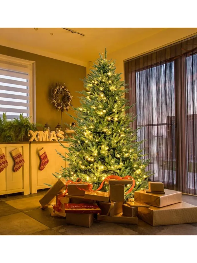 Er reproduziert perfekt die Schönheit eines echten Baumes und verfügt über 788 lebendige Zweigspitzen und üppiges gemischtes Nadelwerk. Der Baum besteht aus hochwertigem PE und PVC, ist feuerfest, verformt sich nicht leicht und ist leicht zu pflegen. Aber die Schönheit hört hier nicht auf. Dieser mit 280 warmweißen LED-Lichtern geschmückte Weihnachtsbaum strahlt einen warmweißen und bezaubernden Glanz aus. Mit 8 verschiedenen dynamischen Beleuchtungsmodi haben Sie die Möglichkeit, die perfekte Atmosphäre für Ihre Gäste zu schaffen. Durch die aufklappbare Bauweise ist eine einfache Montage gewährleistet. Die Zweigspitzen dehnen sich automatisch aus, Sie müssen nur zusehen, wie sich die Magie vor Ihren Augen entfaltet.