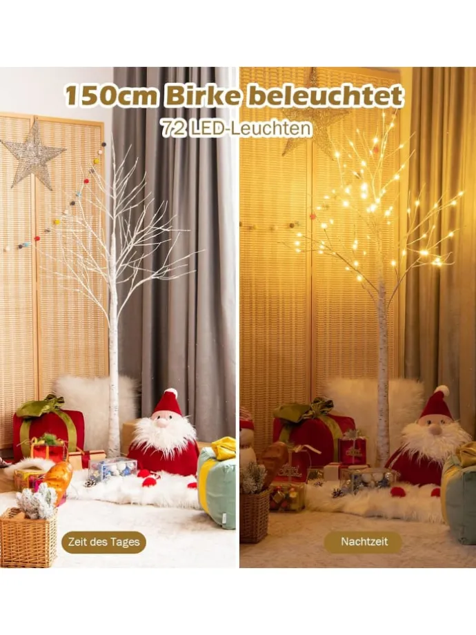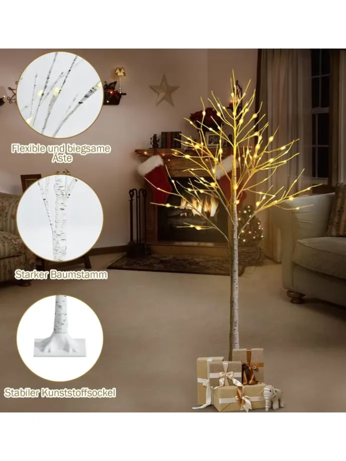 Unser eleganter Birkenbaum ist mit 72 warmweißen LEDs ausgestattet, die für eine heimelige Atmosphäre sorgen. So wird der Raum festlich erstrahlen. Die Form der Zweige ist flexibel, sie lassen sich problemlos zurechtbiegen. Der Baum besteht aus zu 100% neuem PVC. Dieses Material ist geruchlos, ungiftig, langlebig und sehr leicht. Verpassen Sie unseren eleganten Birkenbaum nicht!