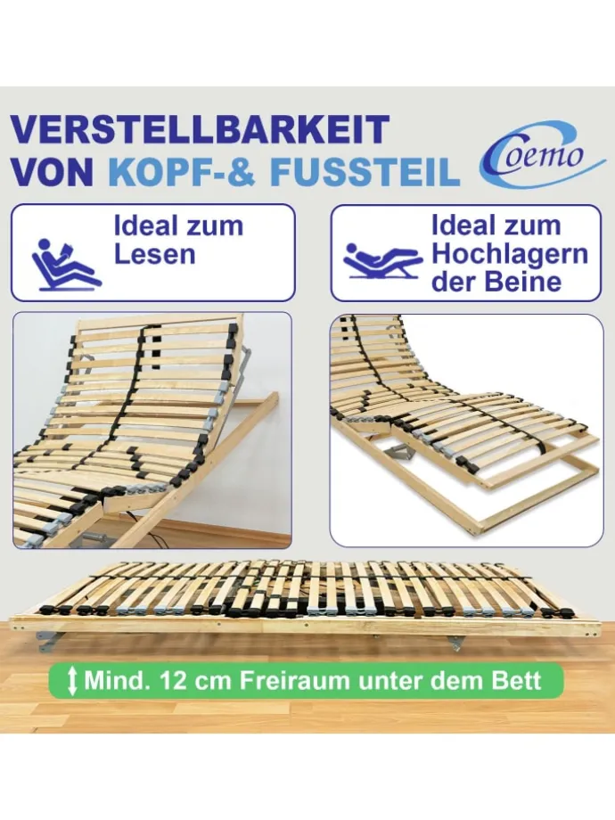 Achtung! Motorrahmen benötigen Baufreiheit über die gesamte Liegefläche. Für den Motor werden mindestens 12,5 cm benötigt. Bitte überprüfen Sie vor Kauf, ob Ihr Bettgestell für Motorrahmen geeignet ist.