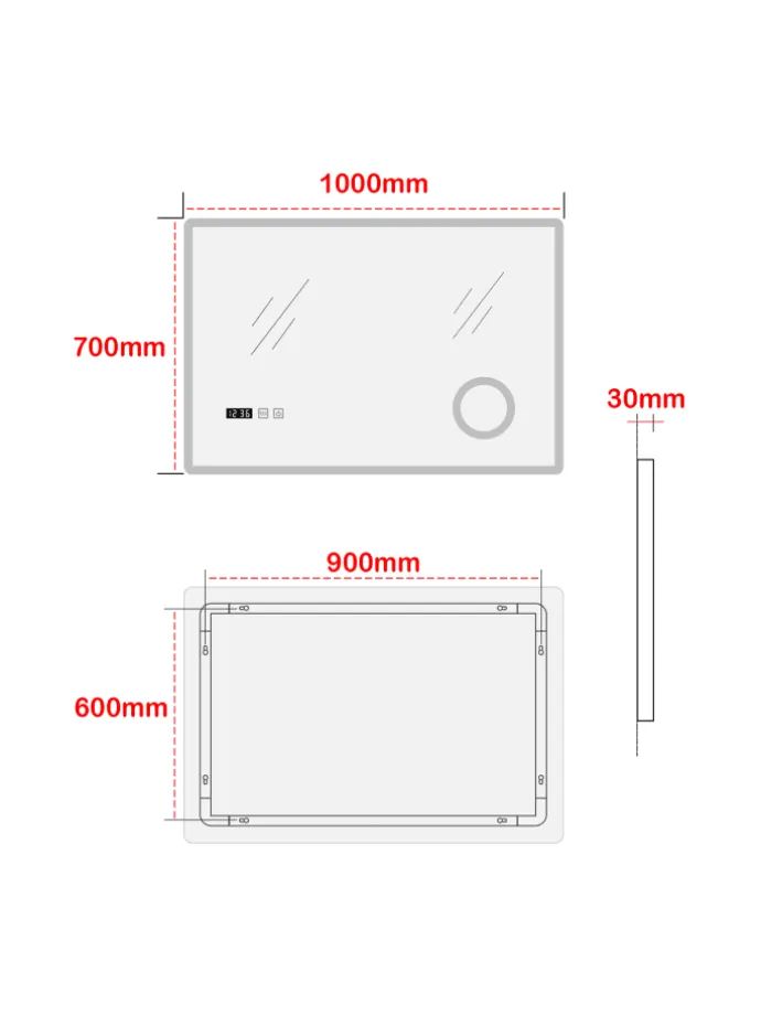 Die Installation ist unkompliziert – schließen Sie den Spiegel einfach an eine vorhandene Stromquelle an und bedienen Sie ihn bequem über einen Wandschalter. Für maximale Sicherheit empfehlen wir jedoch, einen professionellen Elektriker für die Installation zu konsultieren.