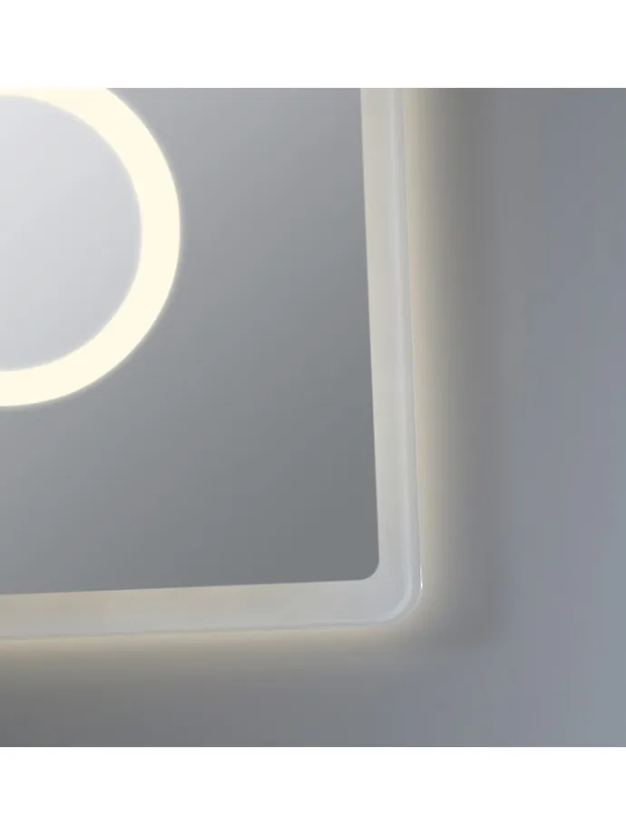 Unser umweltfreundlicher und kupferfreier Badezimmerspiegel lässt sich problemlos horizontal oder vertikal an der Wand anbringen. Zudem verfügt er über einen sanften Lichtkranz mit integrierter Vergrößerungslupe, die eine 3-fache und detaillierte Vergrößerung gewährleistet.