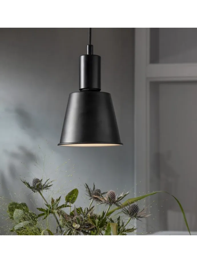 Das schwarze Leuchtmittel hat eine klassische Pyramiden-Form, wodurch es sich mühelos in jeden Wohnstil einfügt
