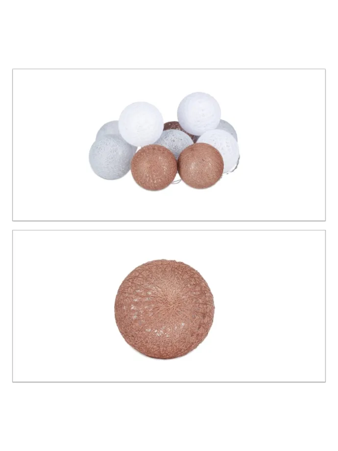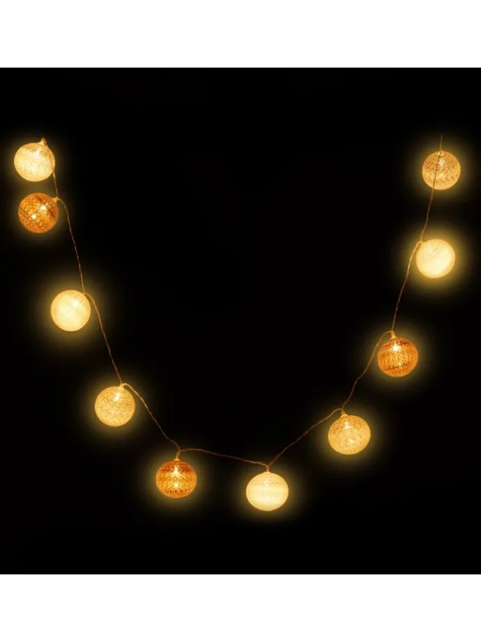 Die passende Beleuchtung trägt sehr dazu bei, dass die nächste Party, die Hochzeit oder die Weihnachtsfeier zu unvergesslichen Ereignissen werden. Die LED-Lichterkette mit den 10 Kugeln lässt Ihnen viele Möglichkeiten des Anordnens, da sie von keiner externen Stromquelle abhängig ist. Betrieben wird die Kugelkette mit Batterien (nicht enthalten). Das warmweiße LED-Licht harmoniert erstklassig mit den feinen Baumwollfäden auf den Leuchtkugeln. Wenn Sie ein stimmungsvolles Ambiente zaubern wollen, ist diese Partylichterkette eine hervorragende Wahl.