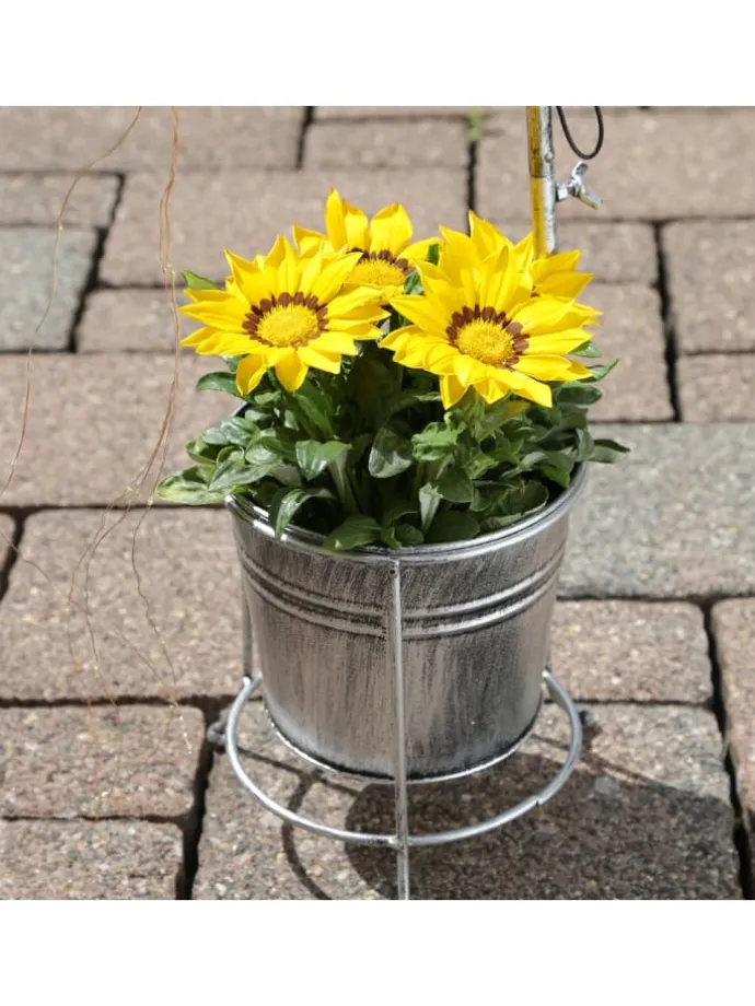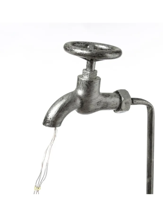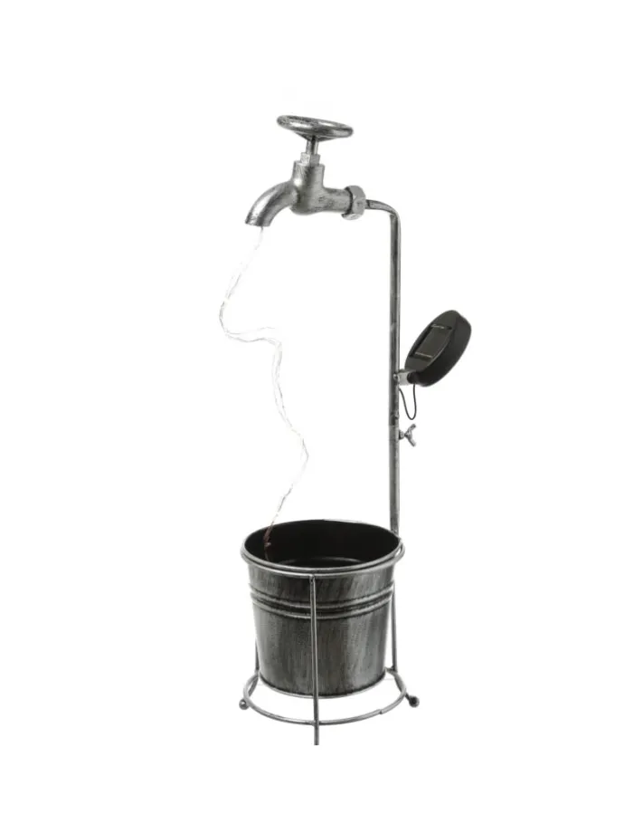 LED Solar Wasserhahn mit Blumentopf Gartendeko H: 60cm silber