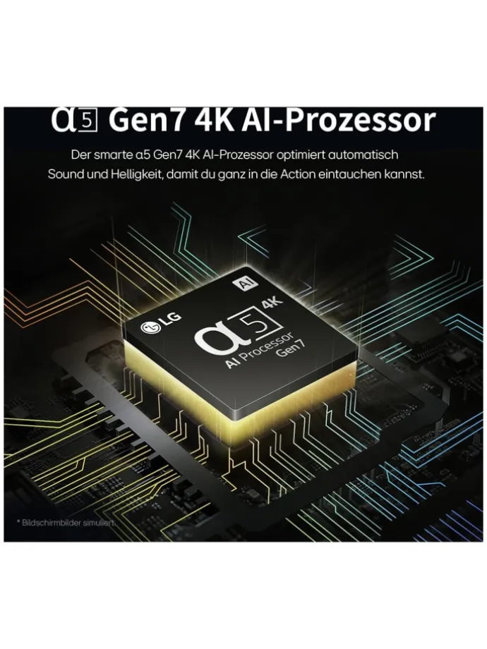 NanoCell-Technologie: Sorgt für präzise und lebendige Farben, indem unerwünschte Lichtwellenlängen herausgefiltert werden. 4K UHD Auflösung: Bietet viermal so viele Pixel wie Full HD für gestochen scharfe Bilder und feine Details. AI Picture & AI Sound: Der leistungsstarke α5 Gen7 4K AI-Prozessor optimiert automatisch Bild und Sound für ein beeindruckendes Fernseherlebnis. webOS Smart TV mit Magic Remote-Fernbedienung: Greifen Sie einfach auf Ihre bevorzugten Streaming-Dienste und Apps zu und genießen Sie eine intuitive Benutzeroberfläche. Filmmaker Mode™ für kinogleiches Entertainment HDR10 Pro & HLG: Unterstützt verschiedene HDR-Formate, um Ihnen ein breites Farbspektrum und mehr Kontrast zu bieten. Bild-Eigenschaften 108 cm Bilddiagonale 43 Zoll Bilddiagonale 16:9 Format 3840 Pixel, horizont. 2160 Pixel, vertikal Spiele-Schaltung 60 Hz Technik automatische Raumlichtanpassung LED-Hintergrundbeleuchtung Elektronik-Eigenschaften HDR-Wiedergabe 4K Signalkonvertierung Ultra HD Auto Low Latency Mode (ALLM) Prozessor: Alpha5 Gen7 AI Sprachsteuerung Bildschirmanzeigen (OSD) mehrsprachiges Menü elek. menügest. TV-Programmführung (EPG) Datenverbindung zwischen Video und TV Idealwert-Funktion Bild/Ton USB-Aufnahmefunktion zeitversetzte Wiedergabe Medienwiedergabe über USB Netzwerkfähig Smart TV Ausstattung Amazon Alexa kompatibel HbbTV Online Apps erhältlich Online Videodienste abrufbar steuerbar über Smartphone/Tablet Smartp.-/Tabl. Inhalte kabellos streamen Ton-Eigenschaften verdeckte Lautsprecher Breitband-Lautsprecher Musikleistung gesamt: 20 W Empfangseigenschaften UHDTV-Empfang DVB-T2 DVB-S2 DVB-C analoger Kabelempfang Wiedergabe-Standards H.264 kompatibel H.265 kompatibel (HEVC) Anschlüsse Digital-Optisch (OUT), Audio Bluetooth-Schnittstelle 1 x Common-Interface (CI+) HDMI-Schnittstelle 2.1 3 x HDMI-Schnittstelle (IN) eARC (Enhanced Audio Return Channel) USB-Schnittstellen: 2 WLAN Ethernet LAN Leistungsaufnahme Angabe gem. EU-Verordnung 2019/2013 Energieeffizienzklasse G Spektrum [A bis G] Energieeffizienzklasse HDR-Wiedergabe G min. Netzspannung: 100 V max. Netzspannung: 240 V Leistungsaufnahme, Stand-By: 0,5 W 54 kWh/1000h Energieverbrauch 84 kWh/1000h Energieverbr. HDR-Wiedergabe Öko-Schalter/Stromsparschaltung Gehäuse-Eigenschaften Breite: 96.7 cm Höhe: 62.1 cm Tiefe: 20 cm Gewicht: 9.3 kg Breite ohne Standfuß: 96.7 cm Höhe ohne Standfuß: 56.4 cm Tiefe ohne Standfuß: 5.77 cm Gewicht ohne Standfuß: 9.2 kg Wandmontage möglich VESA kompatibel Befestigungslöcher (H): 200 mm Befestigungslöcher (V): 200 mm Tisch- und Wandgerät Farbe schwarz