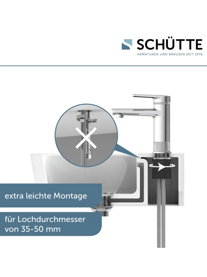 Abgerundet wird die Badarmatur durch ihre einfache Montage. Die mitgelieferte Zentralverschraubung ist praktisch, selbsterklärend und kann ohne Fachkenntnisse schnell umgesetzt werden.