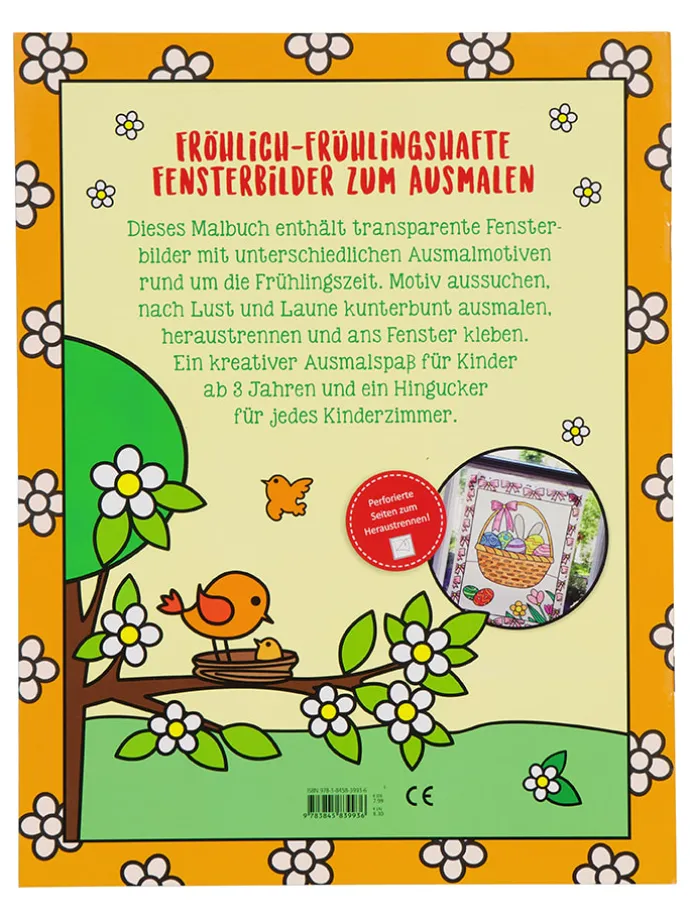 Dieses Malbuch enthält transparente Fensterbilder mit unterschiedlichen Ausmalmotiven rund um die Frühlingszeit. Motiv aussuchen, nach Lust und Laune kunterbunt ausmalen, heraustrennen und ans Fenster kleben. Ein kreativer Ausmalspaß für Kinder ab 3 Jahren und ein Hingucker für jedes Kinderzimmer.