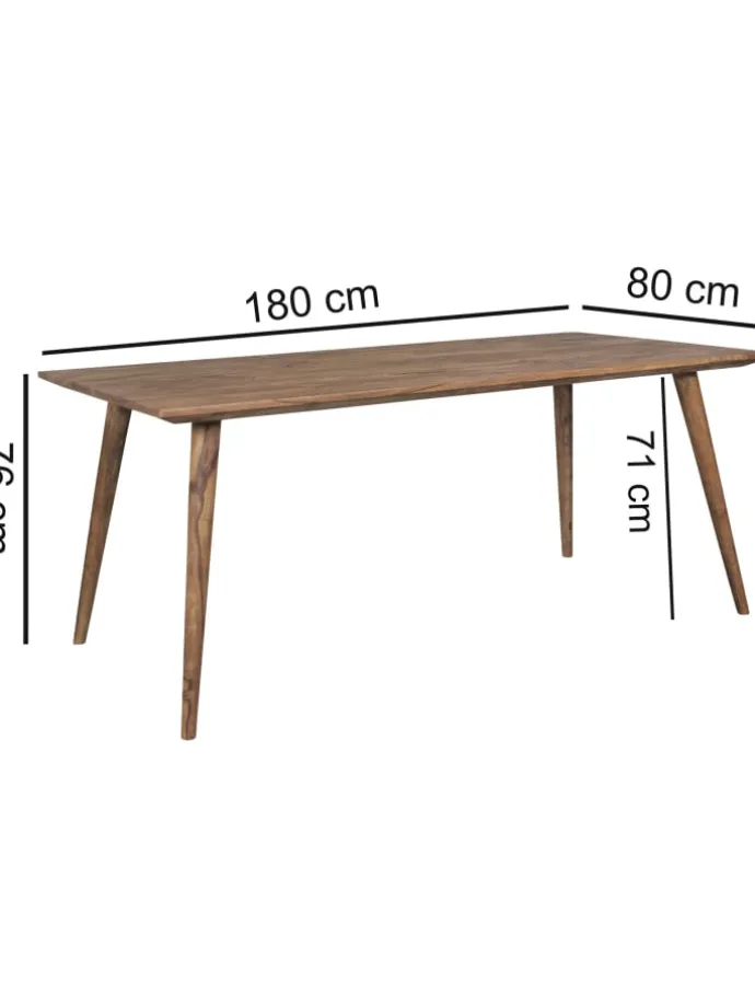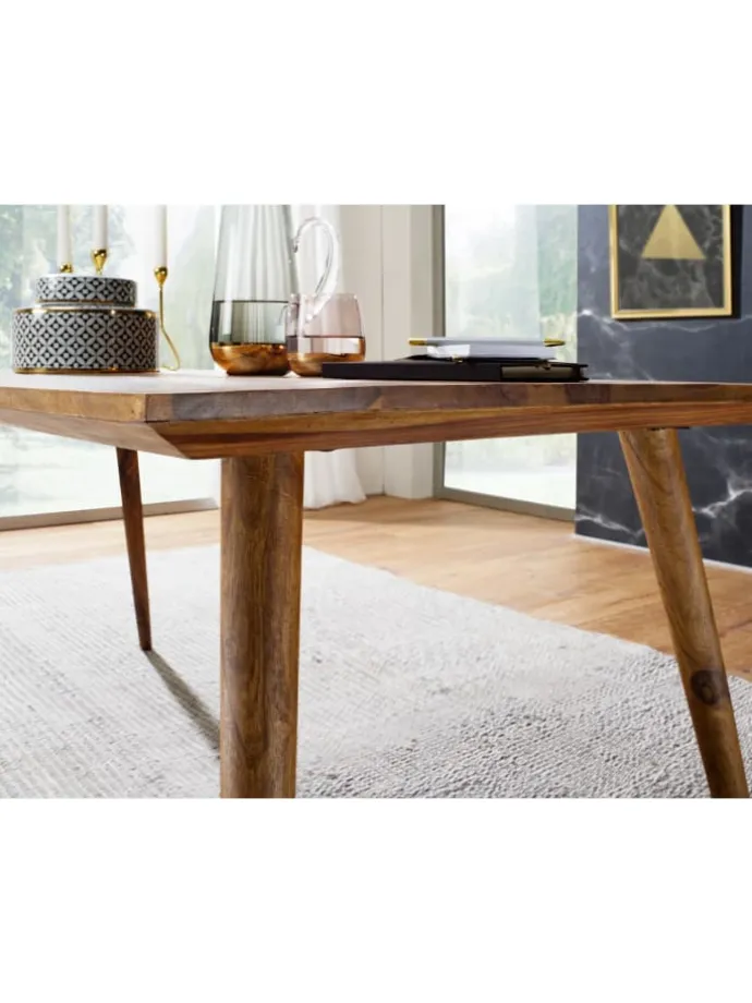 Handgefertigter Esstisch aus massiver Sheesham-Holz mit Retro-Landhausstil Design – jedes Stück ist ein Unikat.