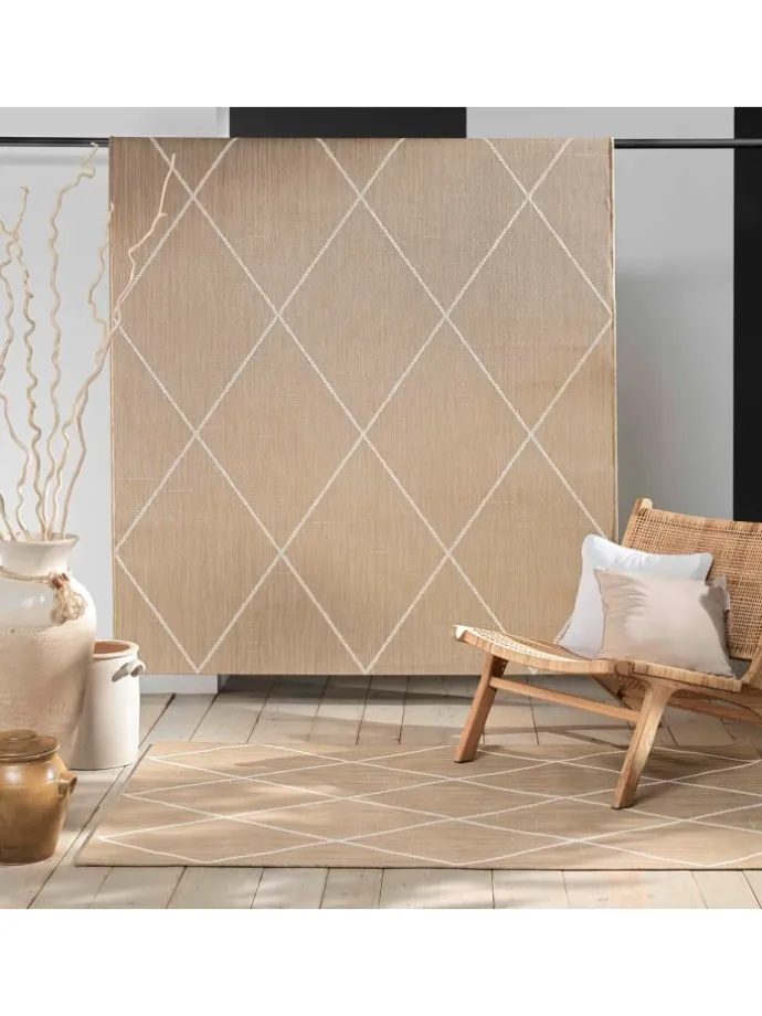 Geometrische Muster in der Naturversion: Neutrale Beigetöne und geometrisches Muster mit Rauten machen DAMIRA zu einer perfekten Ergänzung sowohl für moderne Dekorationen als auch für den Boho-Stil.