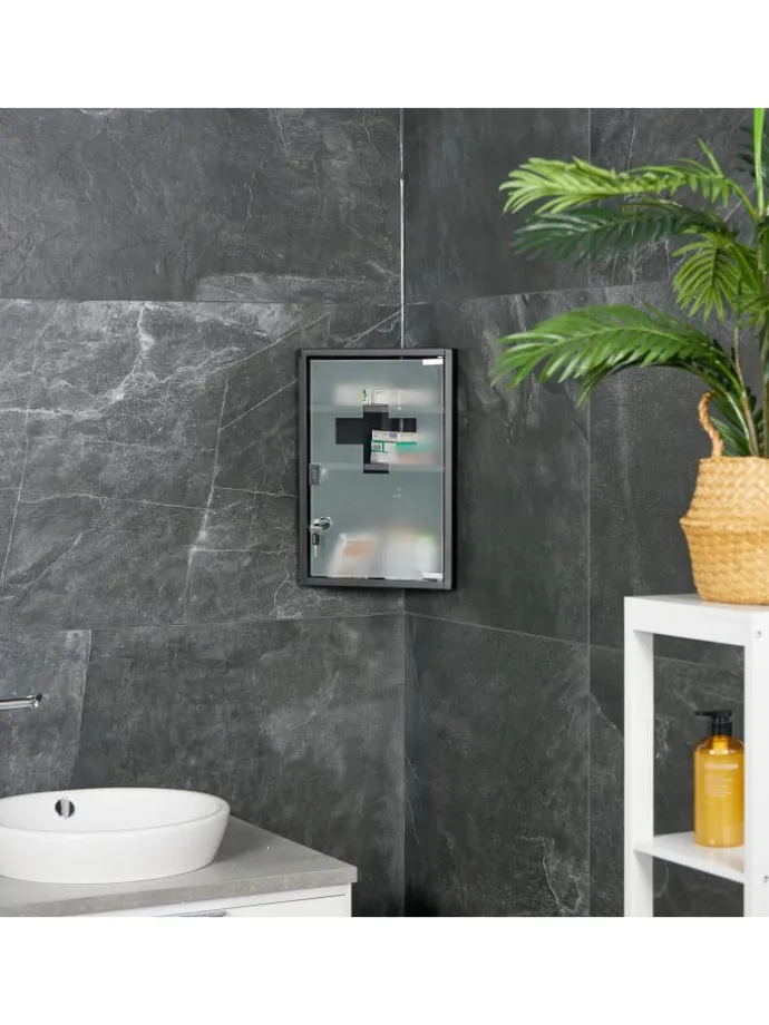 – Moderner Apothekenschrank aus Stahl und Tür aus Milchglas