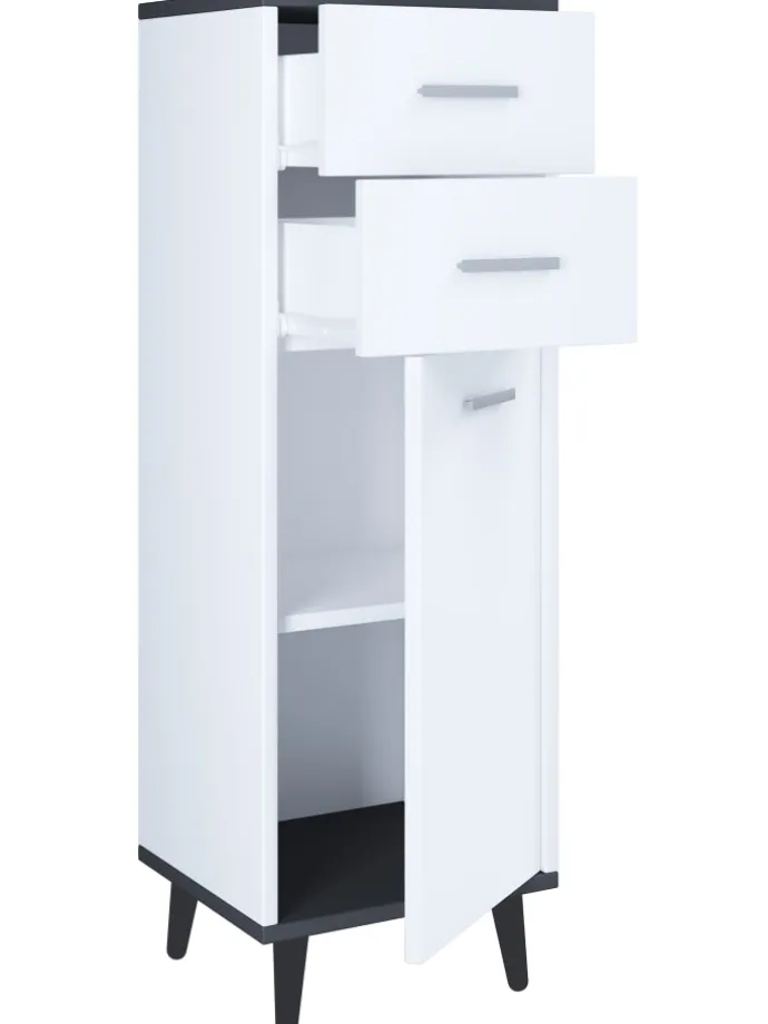 – Badmöbel mit zwei Schubladen und einer Drehtür für das Badezimmer