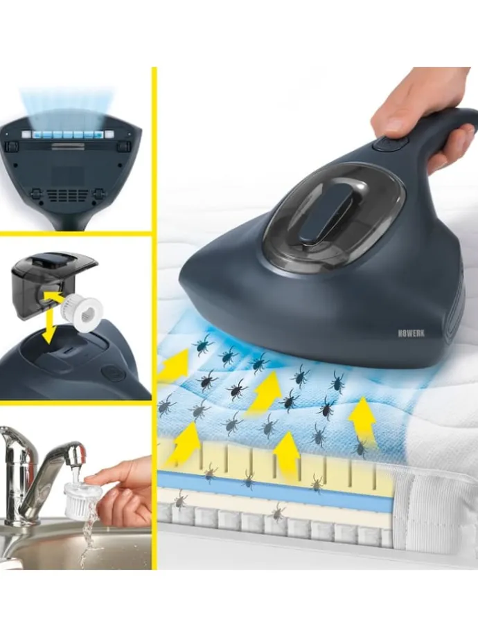Hausstaub-Allergiker können ab sofort aufatmen und sich besser fühlen. Der N8WERK Milben-Handstaubsauger in der Nordic Night Edition befreit Betten, Matratzen, Kopfkissen und Polstermöbel von Staub und Verunreinigungen und sterilisiert gleichzeitig die Oberfläche durch UV-C-Licht. Zwei Schritte in nur einem Arbeitsgang – ohne Chemie.