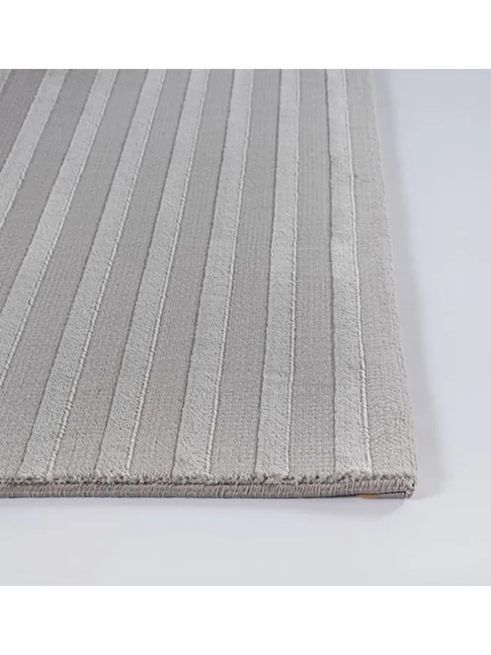 DESIGN: Dezente Muster und geometrische Formen stehen im Kontrast zu den leicht glänzenden Fasern dieses Teppichs, welche in Grau oder Beige erstrahlen