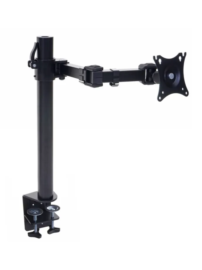 Mit diesem Monitorhalter können Sie ihren Monitor optisch ansprechend und platzsparend an der Tischplatte befestigen. Durch die vielen Verstellmöglichkeiten kann der Bildschirm in fast jede gewünschte Position gebracht werden. Die Halterung ist universell passend für Monitore, bei denen die Lochabstände zu den genannten Vesa-Größen von 75×75 oder 100×100 mm passen. Dies ist der Gewindelochabstand am Monitor. Dabei darf das angegebene Belastungsgewicht der Halterung nicht überschritten werden. Mittels einer Klemme wird die Montage an der Tischplatte zum Kinderspiel.