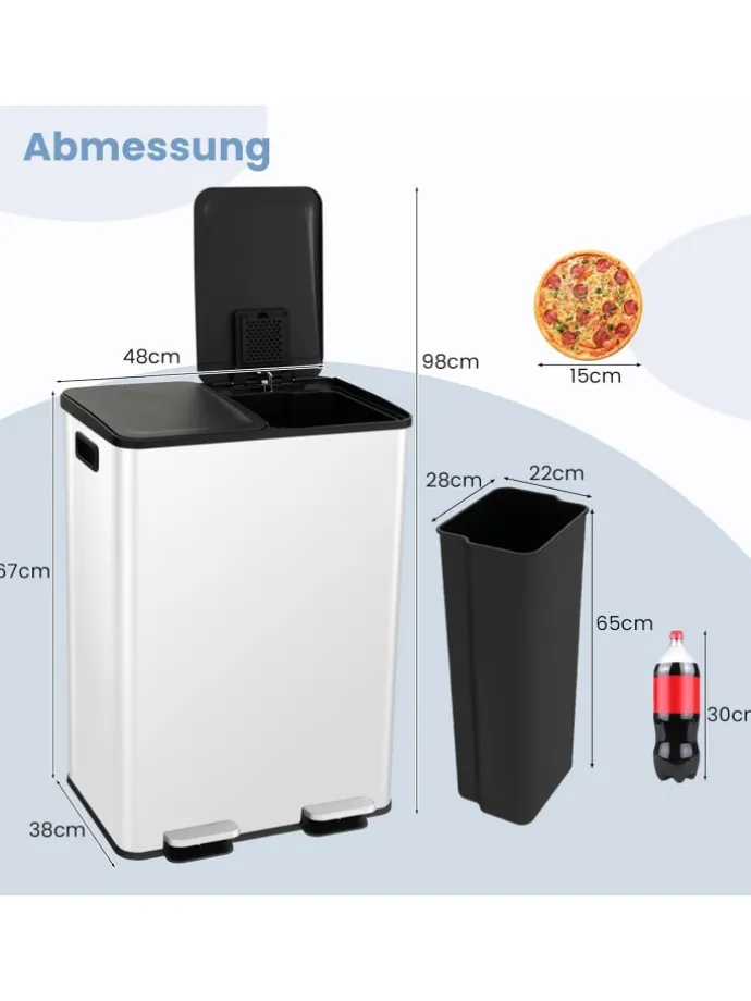 Verfügt über 2 Fächer, in denen sich Recycling- und Küchenabfälle leicht sortieren lassen