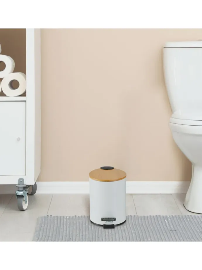 In dem runden Müllbehälter mit Bambusdeckel kannst Du hygienisch und komfortabel Deine Abfälle im Bad oder am Schminktisch entsorgen. Mit dem rutschfesten Trittpedal lässt sich der Badkübel freihändig öffnen. Das Schließen des Deckels gelingt dank Soft-Close-Funktion besonders sanft und leise. Der entnehmbare Kunststoffeimer sorgt für ein leichtes Entleeren des Abfalleimers. Zudem setzt der schicke Materialmix aus mattem Eisen und Bambus moderne Akzente in Deinem Badezimmer.