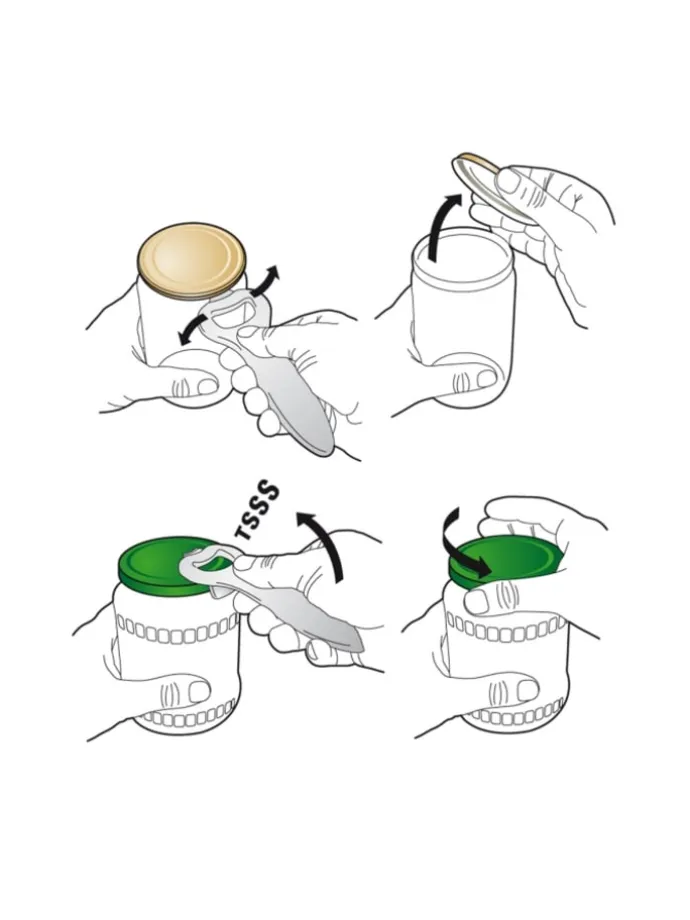 Hervorragend zum leichten Öffnen von Einkochgläsern mit Schraubverschlüssen sowie mit den Deckeln ohne Schraubgewinde. Aus robustem Kunststoff und rostfreiem Edelstahl hergestellt, spülmaschinenfest.