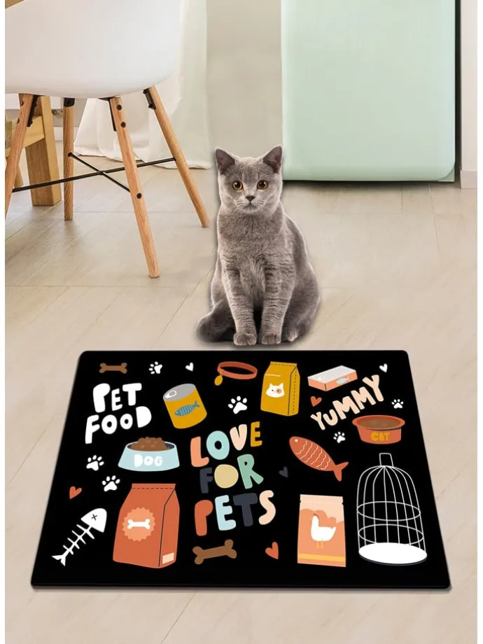 – schützt den Boden rund um die Futter- und Wassernäpfe