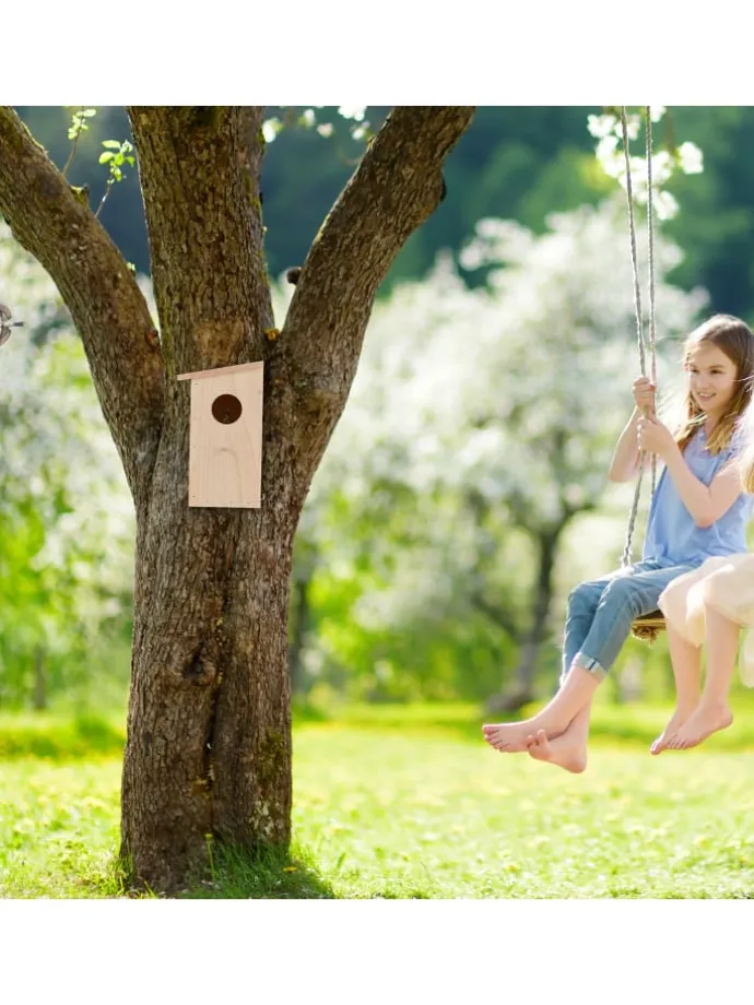 Mithilfe des Nisthauses schaffst Du einen Brutplatz für verschiedene Wildvogelarten wie die Kohlmeise, den Gartenrotschwanz oder Kleiber. Hänge das Vogelhaus im Garten oder auf dem Balkon auf und beobachte gemeinsam mit Deiner Familie die Vögel bei der Aufzucht ihrer Jungen. Der Vogelnistkasten verfügt über eine aufklappbare Seitenplatte, dank der Du den Innenbereich nach der Brutzeit problemlos reinigen kannst. Der Vogel-Brutkasten besteht aus natürlichem und unbehandeltem Kiefernholz.