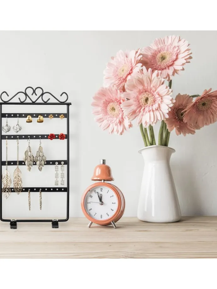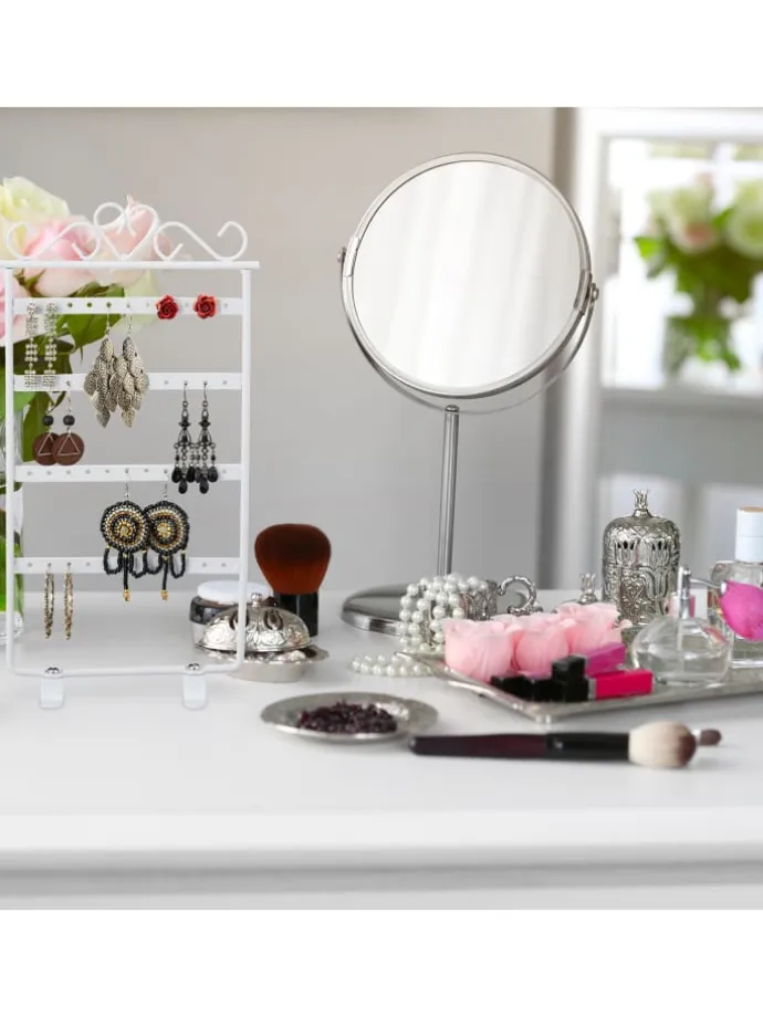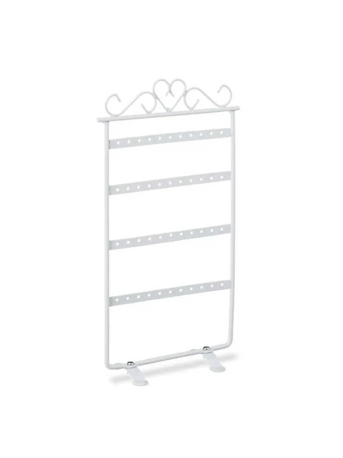 Mit diesem Ohrringständer haben Sie den passenden Ohrschmuck für Ihr Outfit jederzeit parat. Der Schmuckhalter bietet auf 4 Etagen ausreichend Stauraum, um Ihre Lieblingsstücke unterzubringen. Insgesamt verfügt der Schmuck Organizer über 44 Steckplätze für Ohrstecker oder lange Ohrringe. Der Ohrringhalter überzeugt durch sein romantisches Design mit den nostalgischen Verzierungen. Dank der Auswahl aus verschiedenen Farben ist sicher auch ein Schmuckständer für Ihr Bade- oder Schlafzimmer dabei.