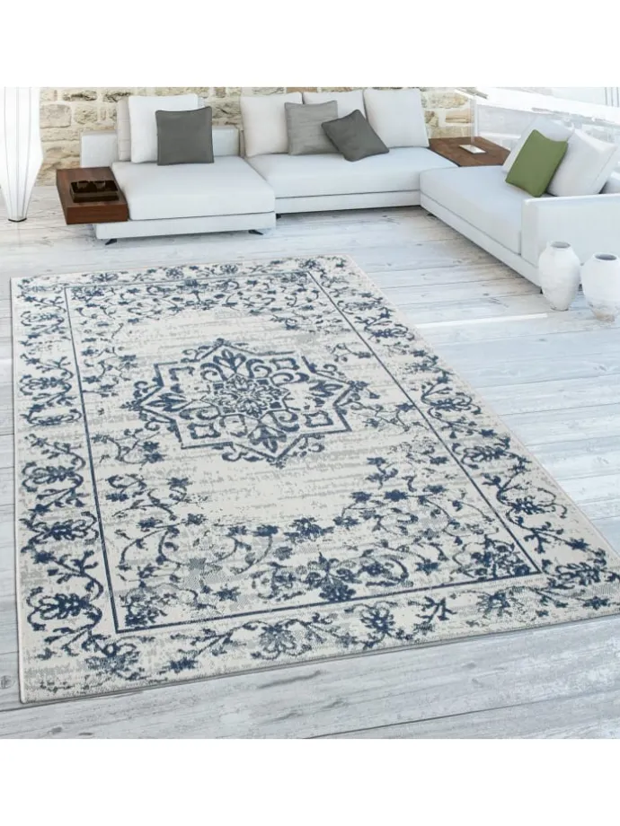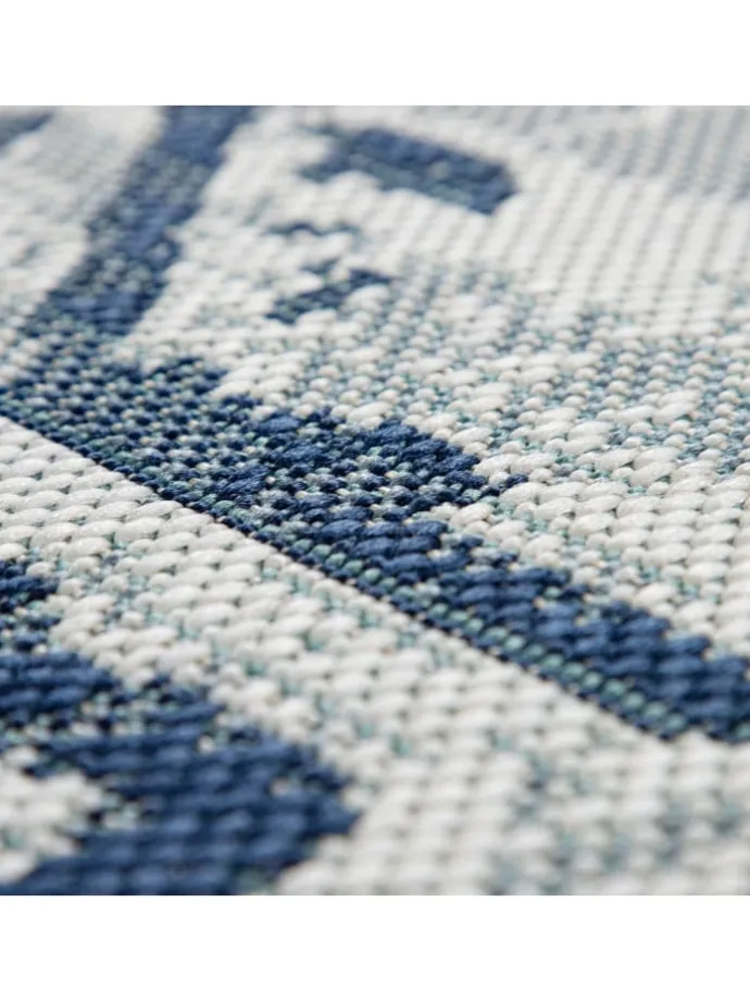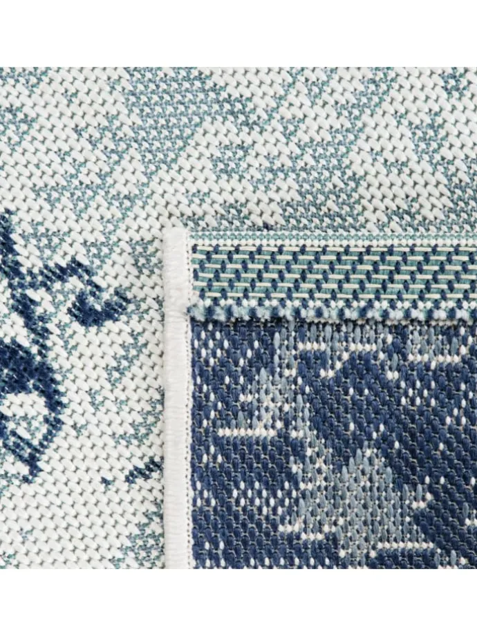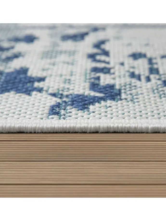 Outdoor Teppich rechteckig – Farben: Dunkelblau, Beige – Medaillon-Vintage