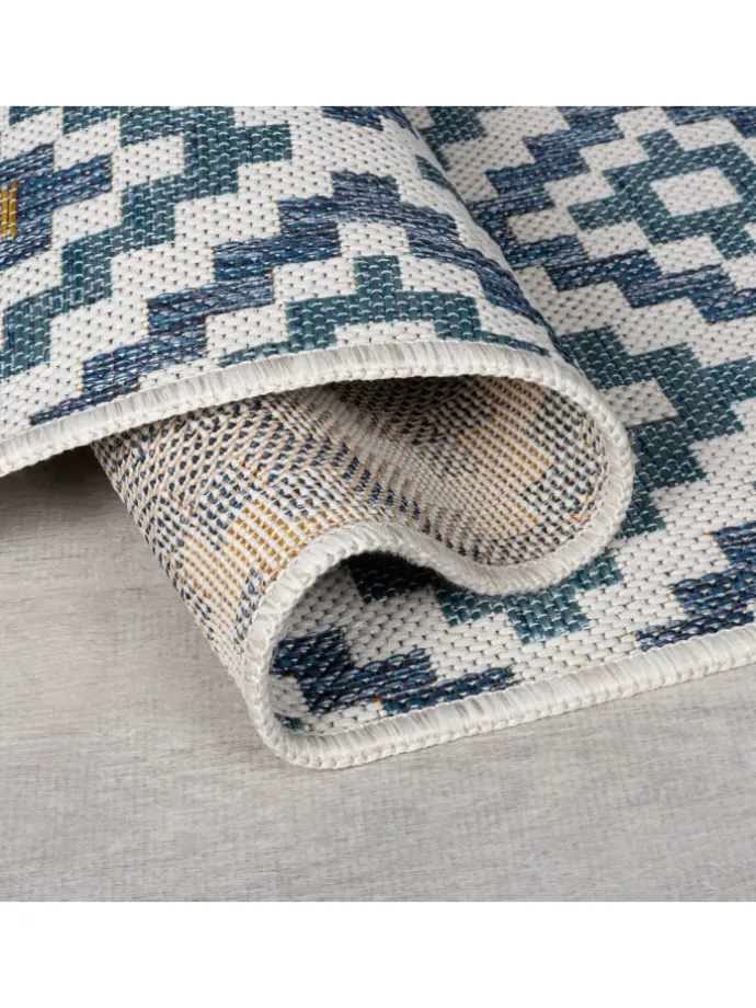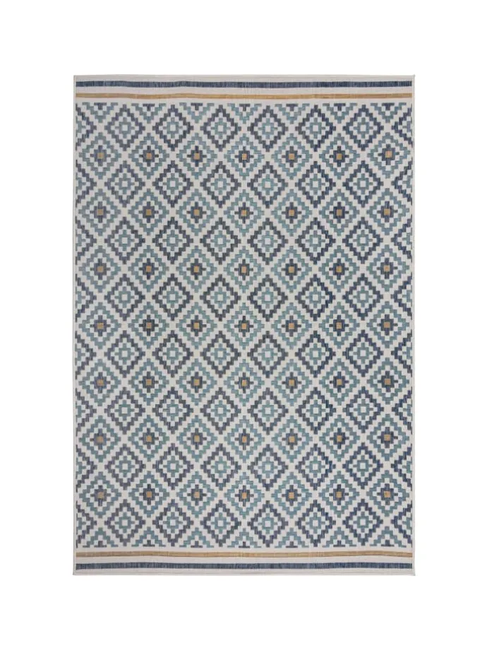 Outdoor Teppich rechteckig 120 x 170 – Farbe: Blau-Gelb – Rauten Muster, Geometrisch