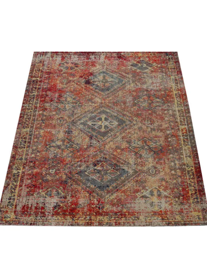 Outdoor Teppich rechteckig, läufer, rund – Farben: Rot – Used-Look-Muster