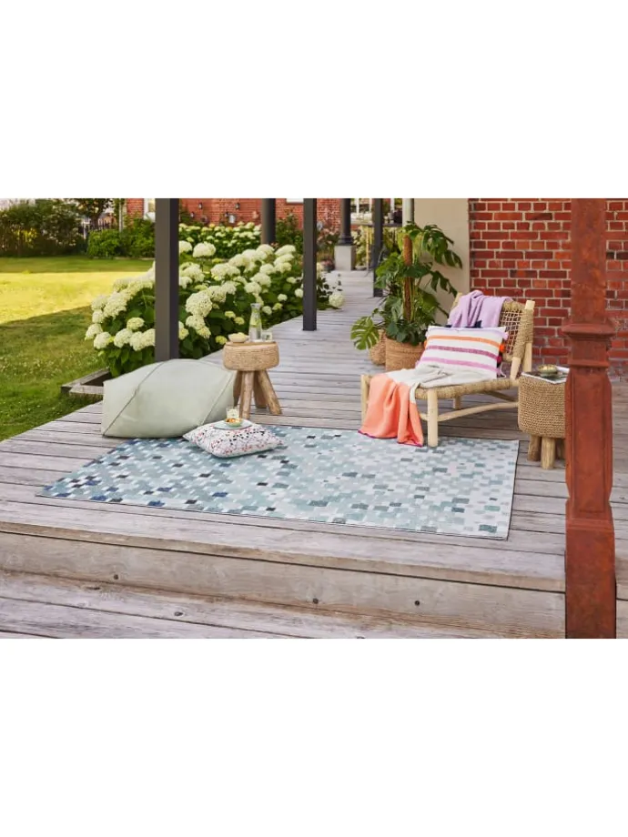 Der Outdoorteppich „Pacific“ von Esprit ist ein moderner Einrichtungsgegenstand, der mit trendigem Mosaik-Muster aufwartet. Die Farbgebung folgt dabei einer ansprechenden Ästhetik. Pacific fügt sich sowohl in Wohnräume als auch in Außenbereiche stylish ein und begeistert mit seinem Look and Feel. Pacific sieht dabei nicht nur gut aus, sondern hat auch einen hohen Gemütlichkeitsfaktor. Der Esprit-Teppich ist für all diejenigen ein Muss, die es in der Inneneinrichtung schön und besonders mögen. Hier geht an Pacific einfach kein Weg vorbei. Hole auch du dir den angesagten Teppich nach Hause!