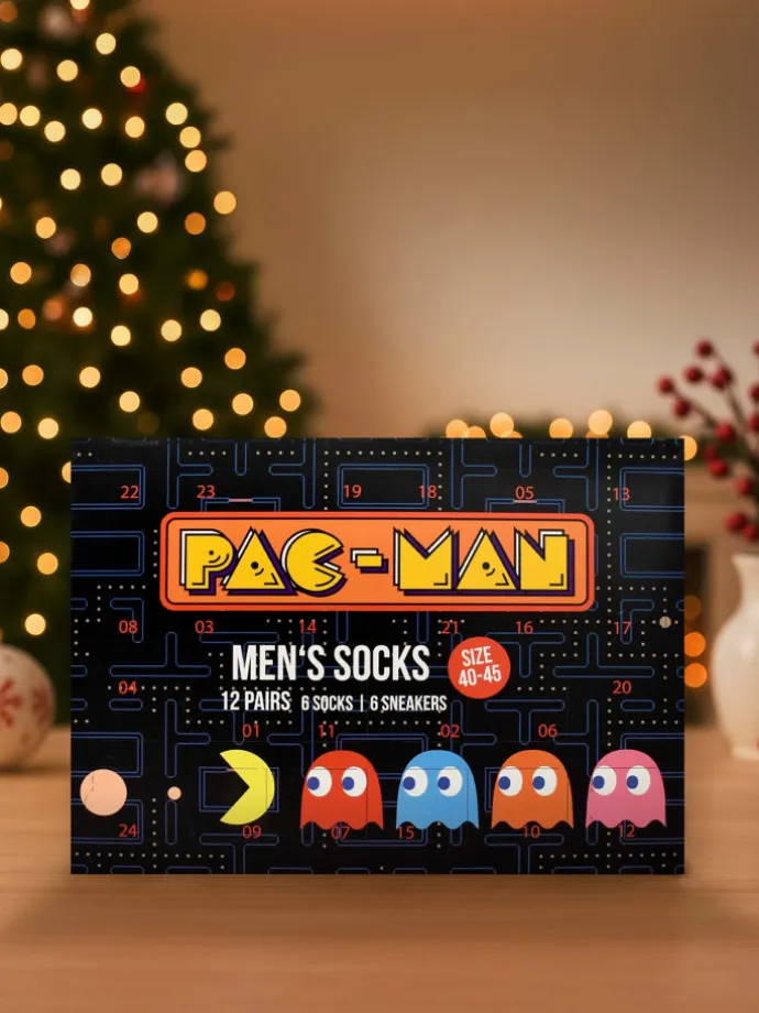 Pac-Man Adventskalender mit 12 Paar Socken Größe 40-45 für Herren Weihnachtskalender mit Sneakers und langen Socken
