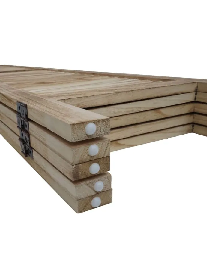 Die Holzelemente wurden hauptsächlich aus der Paulownia hergestellt, einem auch schon in Europa kultivierten Wertholzbaum, der aufgrund seiner Leichtigkeit und hohen Stabilität auch als das Aluminium der Hölzer bezeichnet wird.