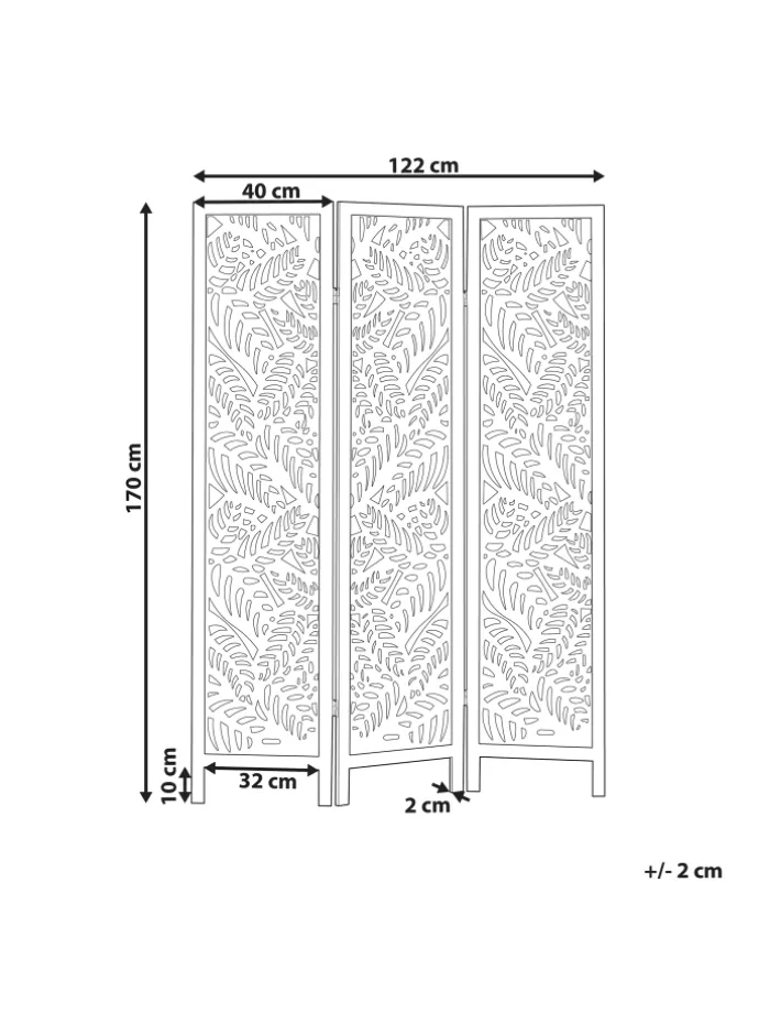 Faltbare, freistehende Trennwand mit Pflanzen- und Lochmuster. Entdecken Sie die Kombination aus Langlebigkeit und modernem Holzdesign in unserem dreiteiligen Raumteiler. Diese faltbare Trennwand aus widerstandsfähigem Paulownia-Holz bietet eine einfache Aufbewahrung und ergänzt Holzinterieurs mit Raffinesse. Werten Sie Ihren Raum mit diesem modernen Möbelstück auf und verleihen Sie Ihrem Zuhause Stil und Funktionalität.