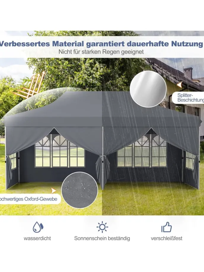 2 Seitenwände mit Reißverschluss können auf verschiedenen Seiten angebracht oder aufgerollt werden