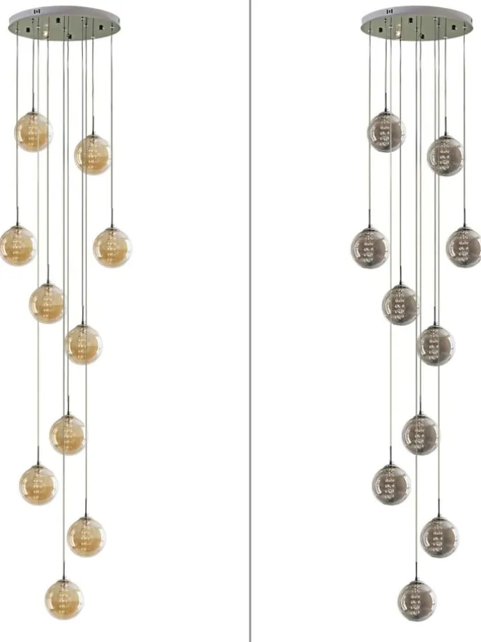 Höhenverstellbar – Elegante Hängeleuchte mit hochwertigem Lampekörper aus Glas. Die längste Abhängung ist 2 Meter.Bei Bedarf kann die Hängelampe von 80 cm bis 200cm in der Höhe verstellt werden und besondere für Treppenhäuser oder von öffentlichen Gebäuden geeignet