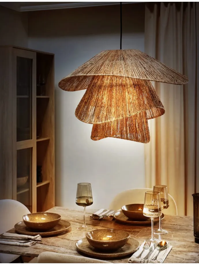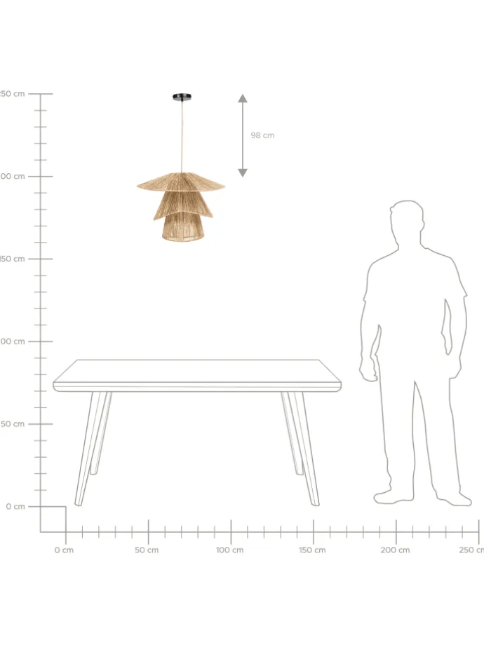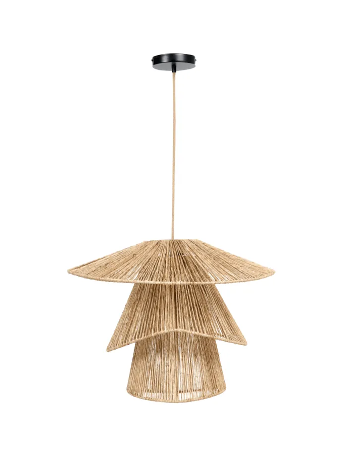 Moderne Hängelampe im Boho-Stil. Entdecken Sie die Welt des Boho-Stils mit dieser Pendelleuchte. Handgefertigt aus Jute, verleiht ihre natürliche Schönheit dem Raum einen Hauch von rustikalem Charme. Dank der unregelmäßigen Form strahlt sie ein warmes und elegantes Licht aus. Dieses pflegeleichte und moderne Designerstück wertet das Ambiente Ihres Zuhauses stilvoll auf.