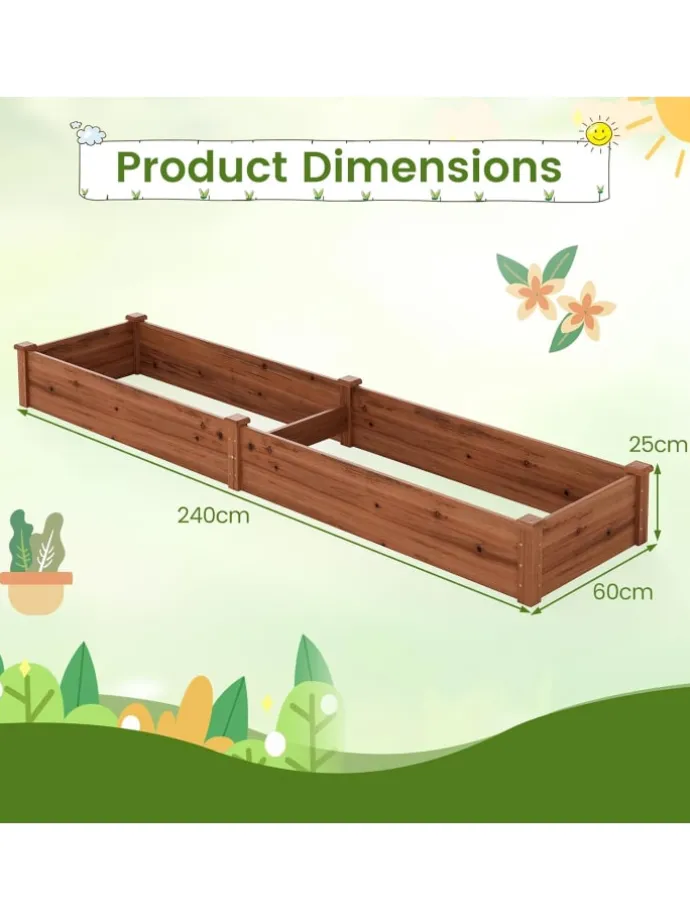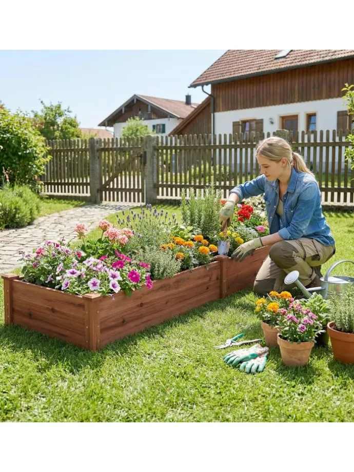 Dieses Outdoor-Hochbeet ist aus naturbelassenem Tannenholz gefertigt, das chemikalienfrei und sicher in der Anwendung ist. Dank der Zapfen- und Schlitzkonstruktion lässt sich die Montage einfach und schnell durchführen, was Zeit und Mühe spart. Mit den beigefügten Schrauben ist dieser Pflanzkasten stabiler und stabiler. Die große Kapazität ermöglicht es Ihnen, mehr Gemüse, Blumen, Kräuter oder Früchte zu pflanzen. Durch den offenen Boden können die Wurzeln Ihrer Pflanzen unter guter Drainage frei wachsen. Dieses natürliche Holzgartenbeet wird lange halten und einen schönen und organisierten Garten schaffen. Es ist eine ideale Ergänzung zu verschiedenen Außenbereichen wie Hinterhof, Garten, Rasen, Terrasse usw.