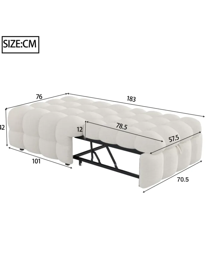 Das kleine Puffbett kann von einer quadratischen Bank in ein kleines Schlafsofa umgewandelt werden, und die Gäste müssen keine Matratze vorbereiten, sondern können sich einfach bequem hinsetzen oder hinlegen.