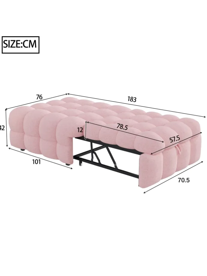 Das kleine Puffbett kann von einer quadratischen Bank in ein kleines Schlafsofa umgewandelt werden, und die Gäste müssen keine Matratze vorbereiten, sondern können sich einfach bequem hinsetzen oder hinlegen.
