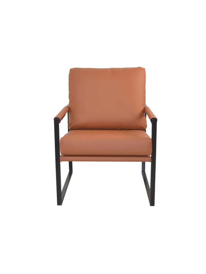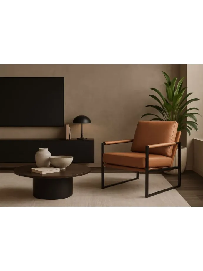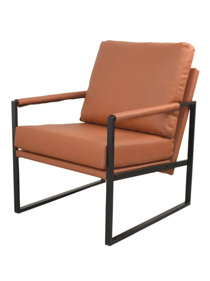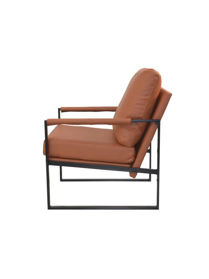 Moderner Sessel im Industrial-Design – Komfort trifft auf stilvolles Metallgestell. Dieser stilvolle Sessel kombiniert modernes Design mit hochwertigem Sitzkomfort. Das markante Gestell aus schwarz pulverbeschichtetem Vierkantstahlrohr sorgt für einen robusten und stabilen Stand, während die gepolsterten Kissen mit Kunstlederbezug für Gemütlichkeit und Stil sorgen. Die weiche Vliesfüllung des Rückenkissens bietet extra hohen Komfort – ideal für entspannte Stunden im Wohn- oder Arbeitszimmer. Dank des schlichten und zugleich eleganten Designs fügt sich der Loungesessel perfekt in moderne, industrielle oder minimalistische Einrichtungen ein. Erhältlich in edlem Braun oder klassischem Schwarz – passend zu deinem Interieur. Die Armlehnen sind ebenfalls mit Kunstleder bezogen und unterstreichen den durchdachten Look. Der Sessel wird zur einfachen Selbstmontage mit Aufbauanleitung geliefert. Perfekte Maße: Gesamtmaß ca. 65 x 84 x 90 cm (B/T/H), Sitzhöhe ca. 46 cm, Sitzbreite 58 cm, Sitztiefe 46 cm, Armlehnenhöhe ca. 58 cm